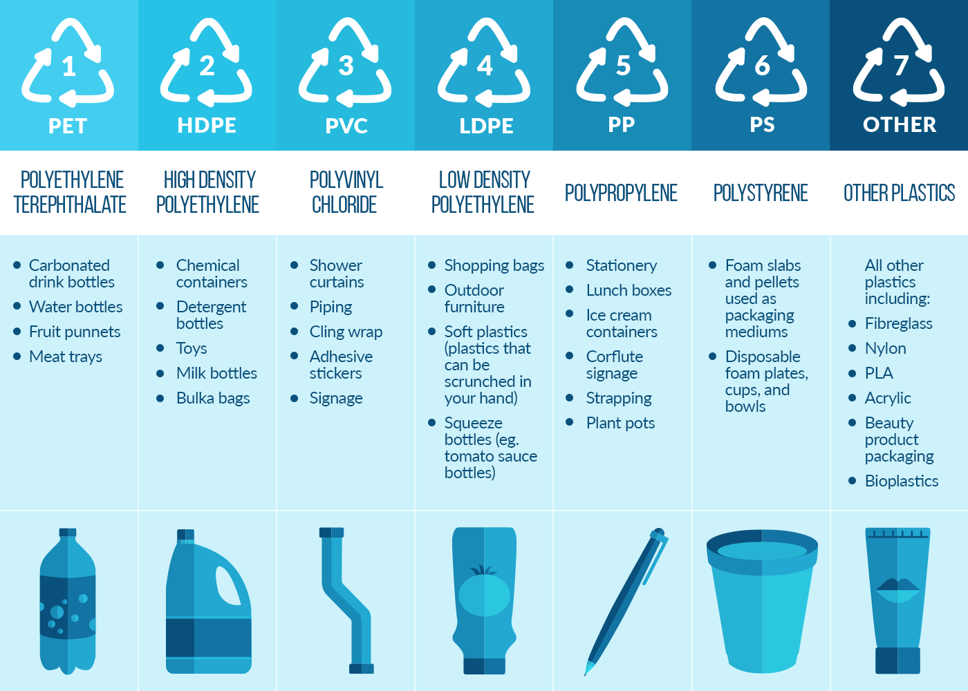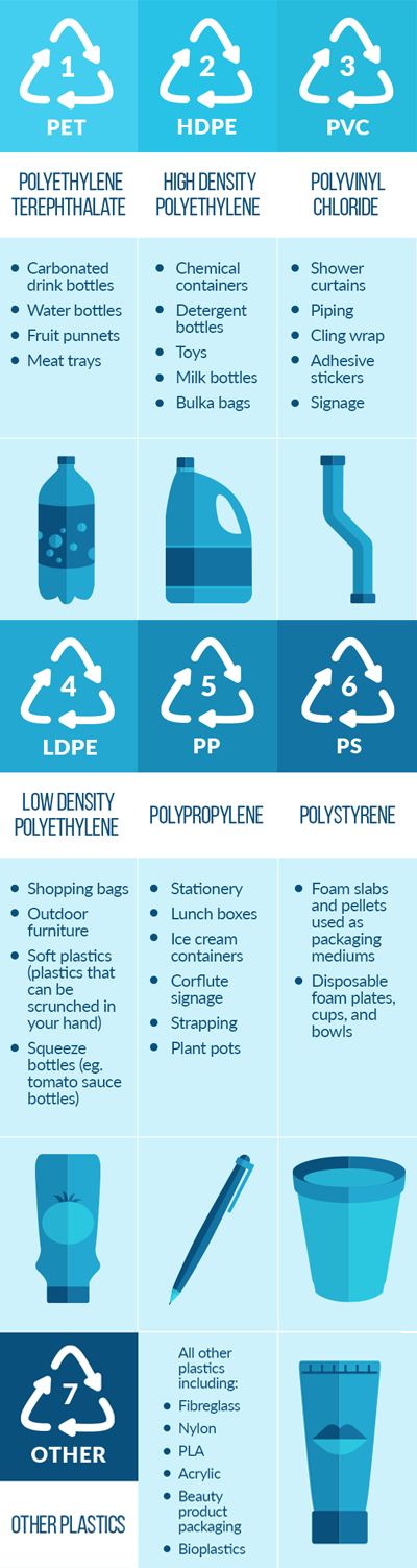 The purpose of these symbols is to communicate the type of plastic that has been used to make the item.