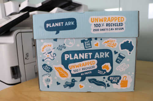 Planet Ark Paper is made from 100% recycled paper and is carbon neutral. It even comes in a box with no ream wrappers, so there's less plastic packaging!